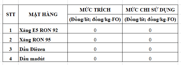 Mức giá trên áp dụng đồng thời với mức trích và chi sử dụng Quỹ bình ổn giá xăng dầu (Quỹ BOG) theo thông báo dưới đây kể từ 15 giờ 30 ngày 08 tháng 04 năm 2026 cho đến khi có thông cáo báo chí (TCBC) mới.