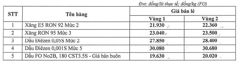 GIANGNAMPETROL điều chỉnh giá xăng dầu ngày 21.04.2026