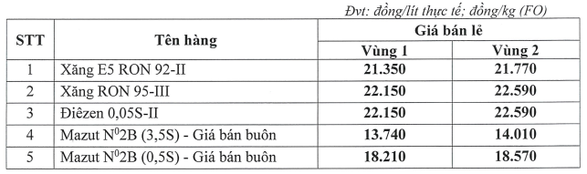 Mức giá trên có hiệu lực từ thời điểm 15 giờ 00 ngày 03 tháng 01 năm 2023 cho đến khi có thông cáo báo chí (TCBC) mới.