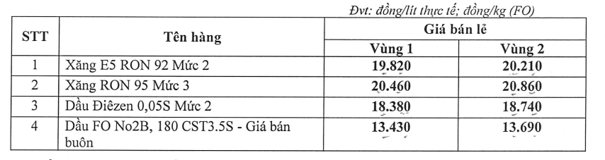 Mức giá trên áp dụng đồng thời với mức trích và chi sử dụng Quỹ bình ổn giá xăng dầu (Quỹ BOG) theo thông báo dưới đây kể từ 15 giờ 00 ngày 04 tháng 12 năm 2025 cho đến khi có thông cáo báo chí (TCBC) mới.