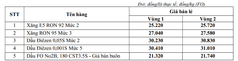 GIANGNAMPETROL điều chỉnh giá xăng dầu ngày 07.03.2026