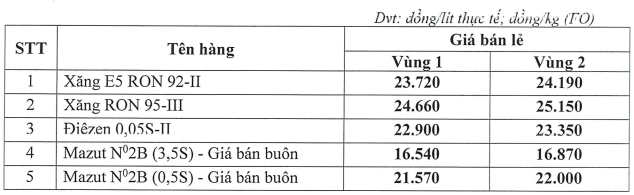 Mức giá trên có hiệu lực từ thời điểm 15 giờ 00 ngày 11 tháng 08 năm 2022 cho đến khi có thông cáo báo chí (TCBC) mới.