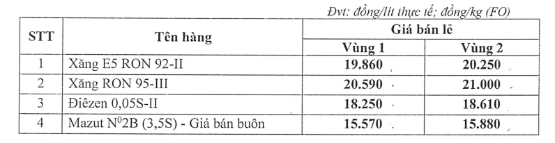GIANGNAMPETROL điều chỉnh giá xăng dầu ngày 12.12.2024