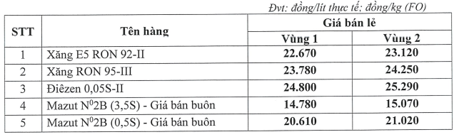 GIANGNAMPETROL điều chỉnh giá xăng dầu ngày 21.11.2022 Lưu lại
