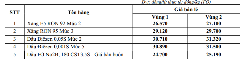 Mức giá trên áp dụng đồng thời với mức trích và chi sử dụng Quỹ bình ổn giá xăng dầu (Quỹ BOG) theo thông báo dưới đây kể từ 23 giờ 45 ngày 10 tháng 03 năm 2026 cho đến khi có thông cáo báo chí (TCBC) mới.